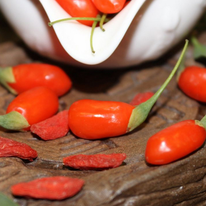 枸杞子可补肾益精,养肝明目,润肺滋阴,是人间的福寿果。说起枸杞子,还有这样一段有趣的传说。话说王母娘娘得道成仙前,曾在昆仑山乌龙沟一带以挖药材为生。因他不图钱财,把采来的草药送给有病的穷人,而被仙人点化成仙,封为玉皇大帝的皇后,也就是王母娘娘。在天庭,王母娘娘不忘凡间的穷人,想到凡间点化一个传药治病的人代替自己,造福人间百姓。
